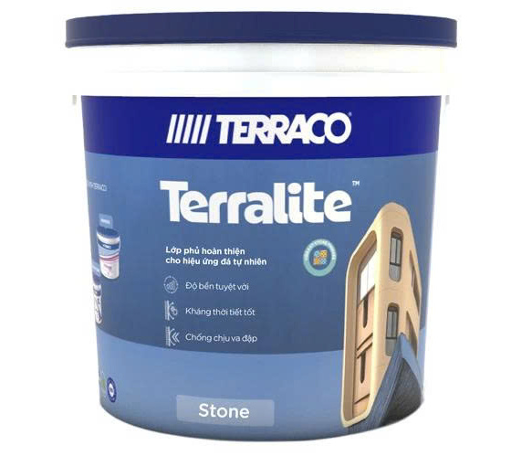 Terralite Stone là lớp phủ hoàn thiện gốc Acrylic cao cấp dành cho ngoại thất, mang đến hiệu ứng đá tự nhiên đầy tinh tế và sang trọng. Sản phẩm được thiết kế thi công bằng phương pháp phun, giúp bề mặt sau khi hoàn thiện có hình thức giống như những hạt đá hoa cương sống động và chân thực. Không chỉ nổi bật về thẩm mỹ, Terralite Stone còn sở hữu khả năng chống chịu thời tiết vượt trội, bền màu theo thời gian, thích hợp cho nhiều công trình ngoài trời như nhà phố, biệt thự hay công trình thương mại. Đặc biệt, bảng màu đa dạng và hiện đại giúp người dùng dễ dàng lựa chọn theo phong cách thiết kế mong muốn, tạo nên điểm nhấn ấn tượng và đẳng cấp cho không gian sống.