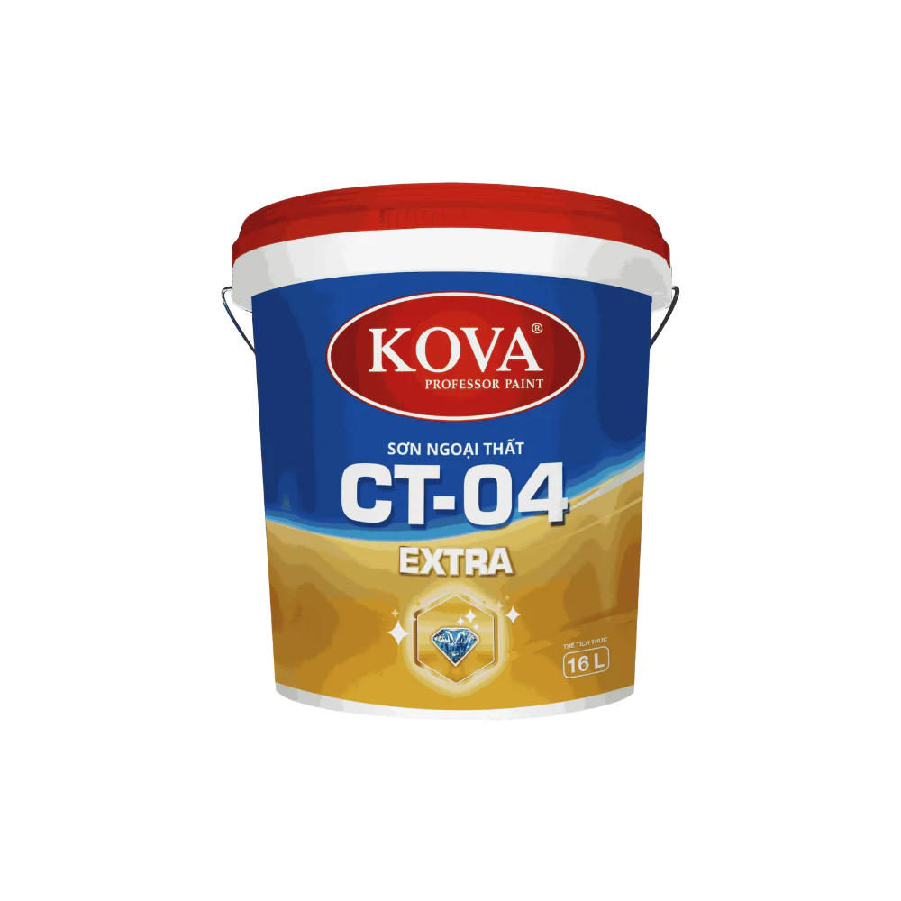 Sơn KOVA CT-04 EXTRA là dòng sơn ngoại thất cao cấp gốc Pure Acrylic hệ nước, được thiết kế để mang lại độ bền và tính thẩm mỹ cao cho bề mặt tường ngoài trời. Sản phẩm có khả năng bám dính vượt trội, giúp lớp sơn liên kết chặt với bề mặt tường, đồng thời tạo độ phẳng mịn và che lấp hiệu quả các lỗ rỗ nhỏ. Nhờ đó, bụi bẩn khó bám sâu vào cấu trúc tường, góp phần giữ bề mặt luôn sạch đẹp. Đặc biệt, sơn còn được tích hợp công nghệ tự làm sạch cao cấp, giúp hạn chế bụi bẩn bám lại trên tường sau mỗi trận mưa, giữ cho công trình luôn tươi mới theo thời gian. Với những ưu điểm nổi bật này, KOVA CT-04 EXTRA là lựa chọn phù hợp cho các công trình nhà ở, biệt thự và tòa nhà cần lớp sơn ngoại thất bền đẹp, lâu dài.